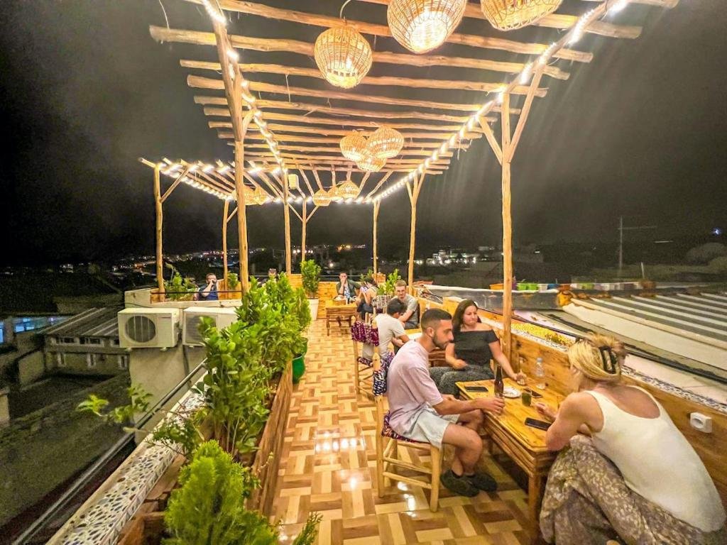 Les terrasses sur le toit offrent une vue spectaculaire sur la médina et les tombeaux mérénides, tandis que toutes les chambres sont équipées de climatisation réversible / chauffage et de Wi-Fi fibre ultra-rapide. Avec 8 chambres au total, dont 3 dortoirs, l’auberge est principalement destinée aux voyageurs de moins de 40 ans, recherchant une ambiance conviviale et festive, avec des événements et activités réguliers.